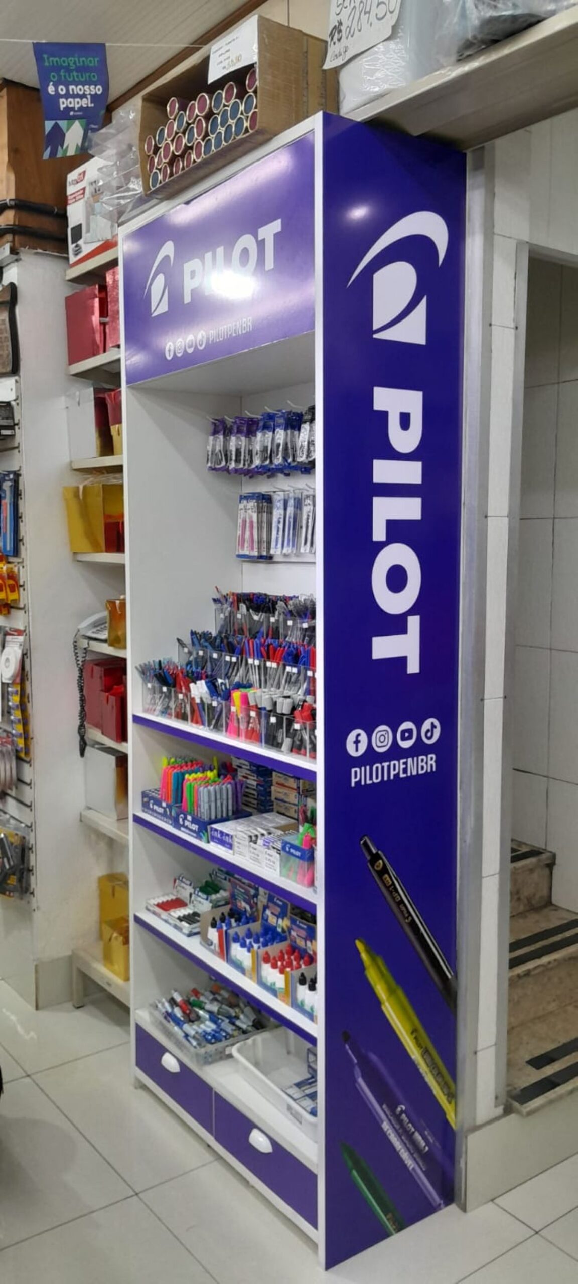 É com grande satisfação que compartilhamos mais um trabalho de sucesso em envelopamento comercial, desta vez transformando completamente um expositor de produtos da renomada marca Pilot, uma gigante no setor de artigos de papelaria e escritório.