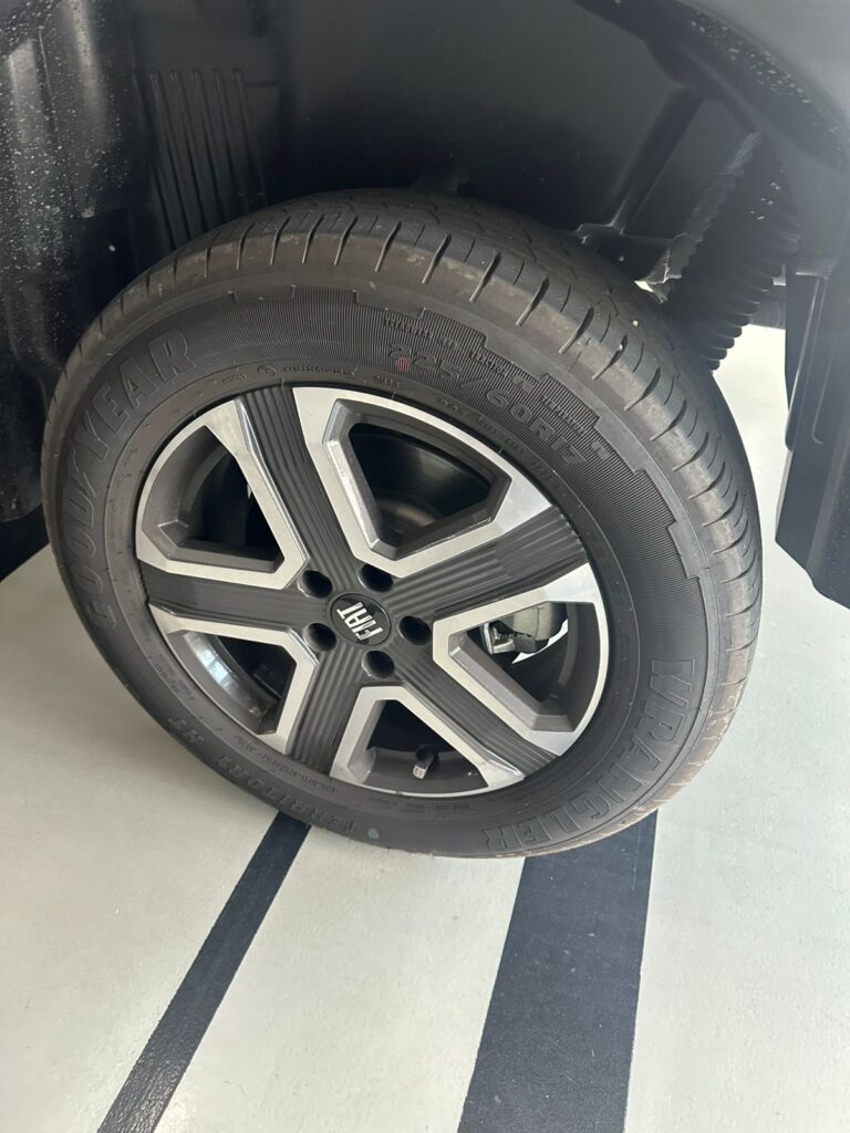 Elas têm o design de fábrica, com o icônico logotipo da Fiat centralizado, e estão montadas com pneus da marca Wrangler