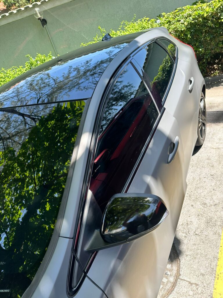 Sendo assim, ao aplicar o envelopamento cinza fosco neste modelo, conseguimos acentuar as linhas de caráter do carro. Como resultado, tornando os vincos da carroceria mais visíveis e conferindo um aspecto “musculoso” que a pintura original brilhante muitas vezes camufla.